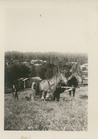 Ännu under 1800-talet var marken mellan ån och de röda parstugorna på åkerraden uppdelad i åkerlappar för stugornas invånare. Vägens namn Åkerraden beskriver alltså hur området såg ut på den tiden. Också hela backen ovanför Slaggbyggnaden var tidigare potatis- och trädgårdsland.
