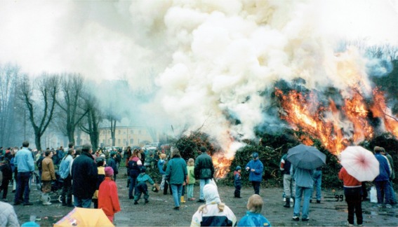 Glad Valborg allihopa! Museet är öppet på valborgsmässoafton 30.4 kl. 11-16, men stängt första maj. På bilden Fiskars massiva maj-brasa på valborgsmässoafton år 1999.